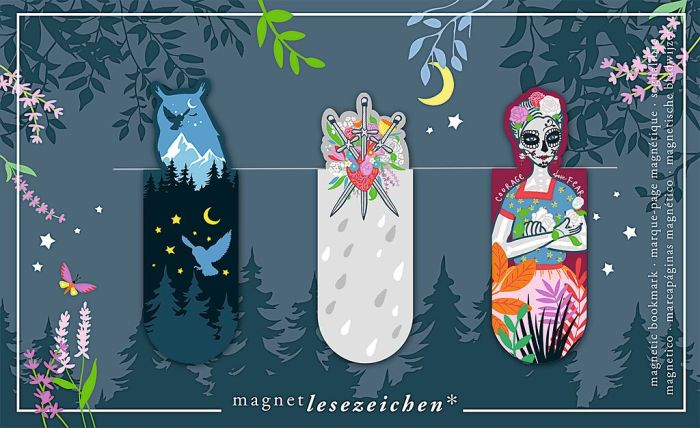 Immer in hübsch gestalteten und themmatisch passenden 3er Sets verpackt, sind die Magnetlesezeichen nicht nur stylisch, sondern perfekt zum Sammeln oder Verschenken. Davon kann man nicht genug haben! Ob für dich selbst oder als Geschenk für jemand Besonderen – diese Magnetlesezeichen sind ein wahrer Blickfang und bereichern jedes Leseerlebnis.
